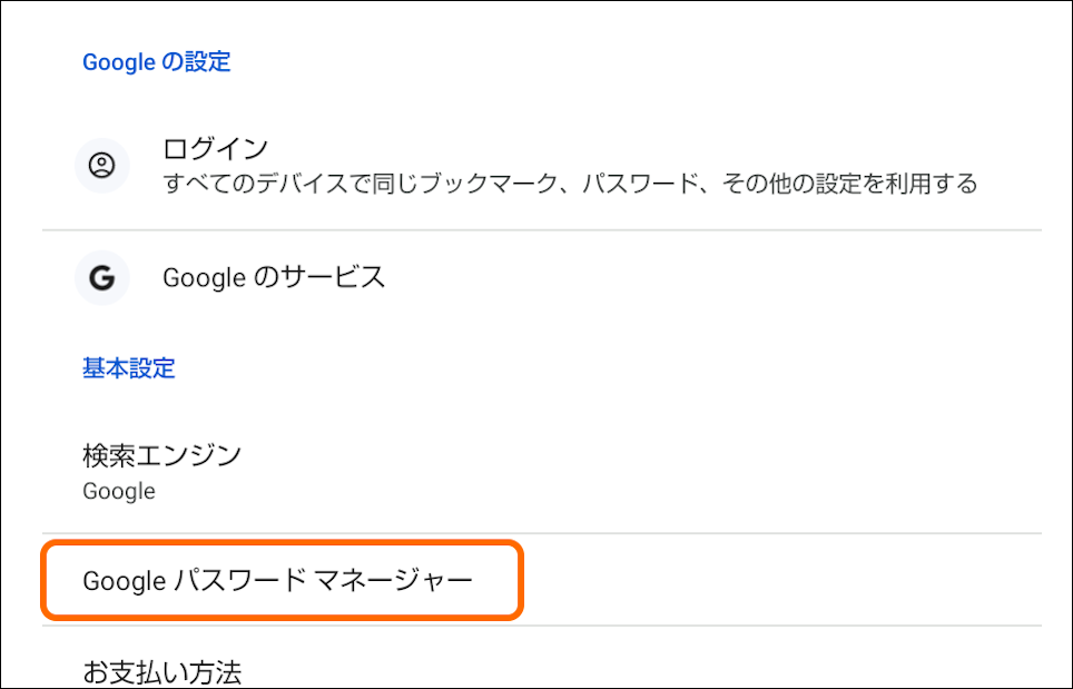 3.設定画面から [Googleパスワードマネージャー」をタップする。