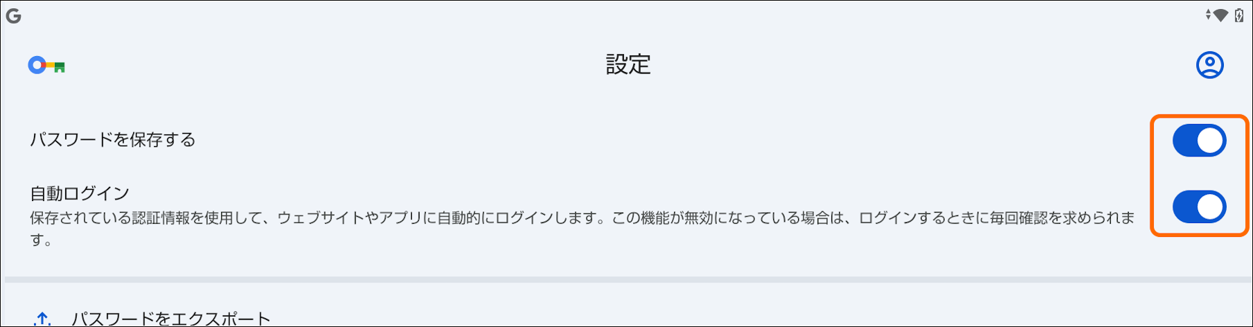5.「パスワードを保存する」, 「自動ログイン」のスイッチをONにする。