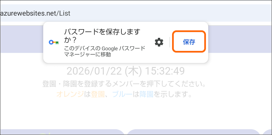 8.右のようなメッセージが表示されるので、 [保存] をタップする。