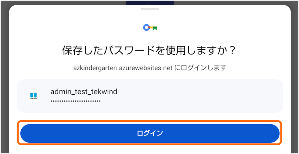 9.次回以降同じサイトにアクセスする際には以下のようなメッセージが表示される。 [ログイン] をタップすることでユーザー名とパスワードのの入力を省略してログインすること ができる。
